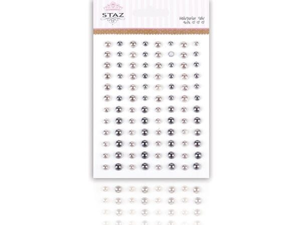 Halvperler m/ lim - sølv - 96 stk