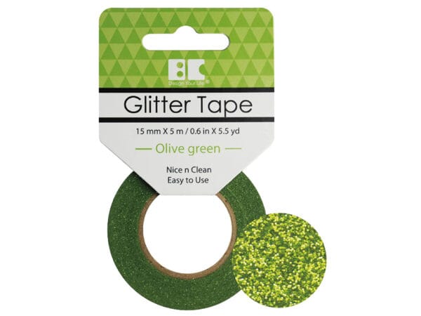 Glittertape - 15 mm x 5 m - Olivengrønn