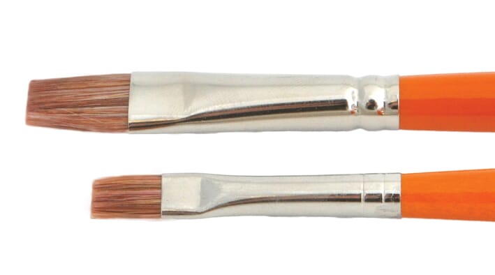 Flat mårhårsimitasjonspensel av bleket oksehår. Sort, langt skaft. For fine og små detaljarbeider med olje og akrylmaling.
