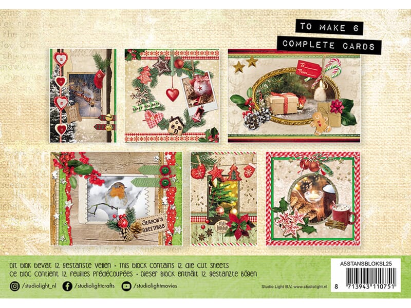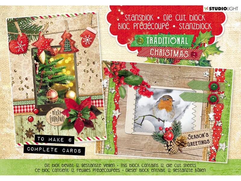 Die cut block A5 - Traditional Christmas - til 6 kompl kort