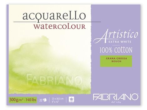 Fabriano Artistice watercolor paper is mouldmade, 100% cotton, chlorine free, acid free and archival. The paper ha an internal and external sizing, which makes it ideally absorbant ans suitable to lifting, scraping and other techniques. Available in two colors: Traditional White and Extra White produced without whitener. This hight quality paper will meet the expectations og all levels of artists. Ideal for: watercolor, goache, acrylic, ink, charcoal and drawing. Blocks are glued on four sides to prevent the paper from warping when wet. Available in three surfacec: cold pressed, hot pressed and rough.