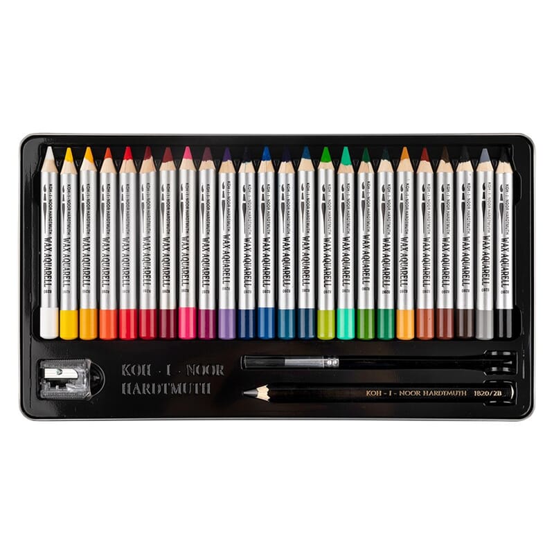 • Koh-i-Noor Wax aquarelle - sett 24 stk i metallskrin